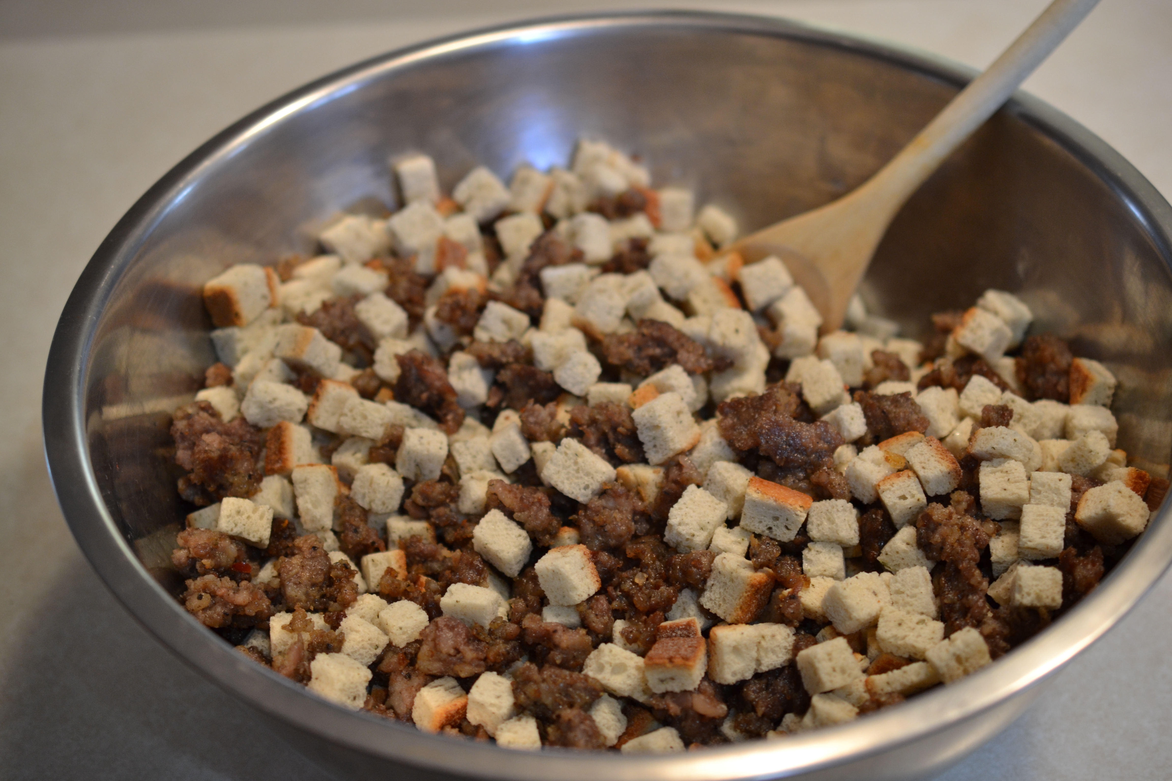 As usual, it was a weeknight in which I had not planned dinner and had very little ingredients to make anything. So, I started searching through the pantry and freezer and found hamburger and tater tots. I thought they would go well together – you know – like meat and potatoes :). I searched for some vegetables to add and picked corn and green beans. Looking through the pantry I found Lipton Onion Soup Mix, beef broth, and canned tomatoes. I thought the soup would give it good flavor and the tomatoes would give it color.